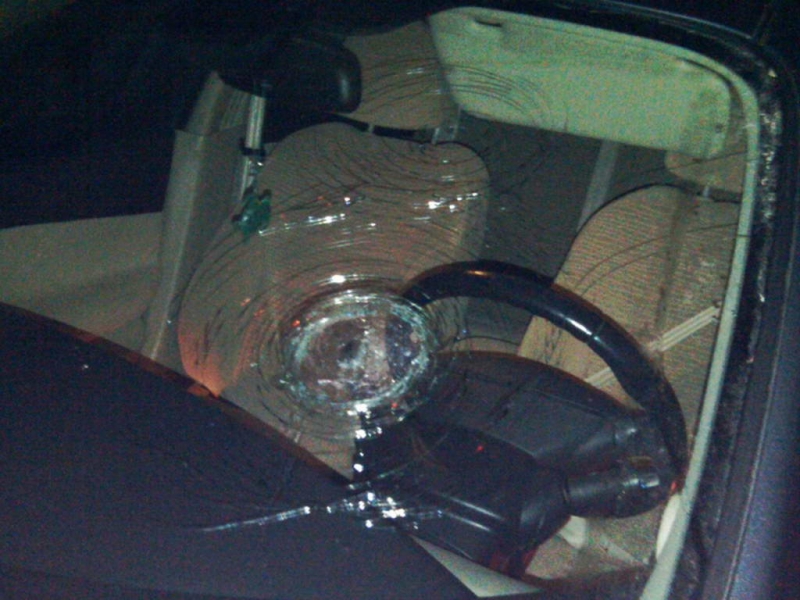 Ieri (25.01.2011 zi cu ghinion, marti 3 ceasuri rele) , in jurul orei 20…era frig afara…iar Ralu aka „Testoasa”, a plecat spre casa. Ajunsa in dreptul masinii realizeaza cu stupoare ca cineva un raufacator i-a vandalizat masina. Constatarea a fost simpla in parbriz doua gauri + zgarietura pe aripa stanga fata + capota = dezastru!  Intrebarea este cine ar face asa ceva avand in vedere ca masina era parcata intr-un loc ok, fara sa fie al cuiva sau sa fie insusit de cineva cum se intampla ded obicei dupa blocurile gri. Mai ciudat este insa ca nimeni nu a vazut sau a auzit ceva, cu toate ca „arma ” faptei era langa masina.